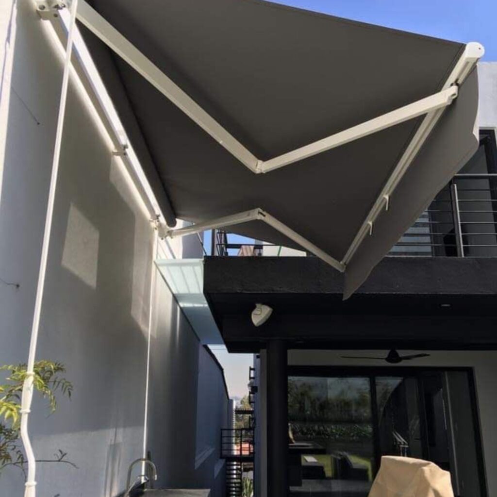 Estructura de Aluminio Reforzado: Los brazos invisibles y el cofre (donde se guarda la lona) están fabricados en aluminio o acero tratado para resistir la corrosión, un punto crucial en el clima costero.